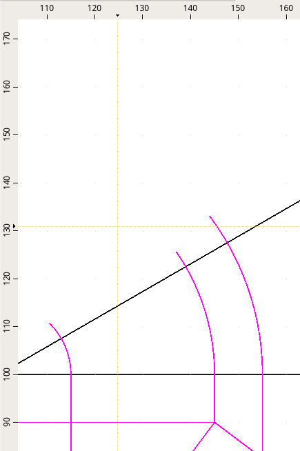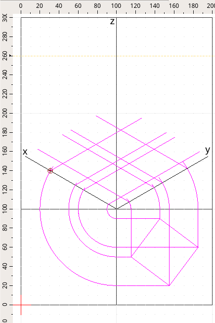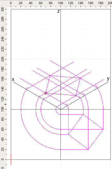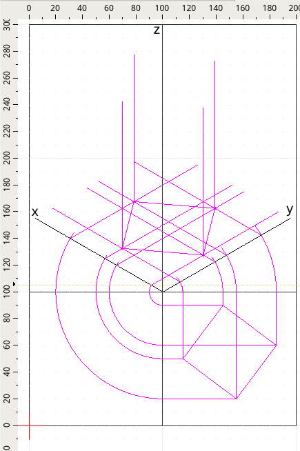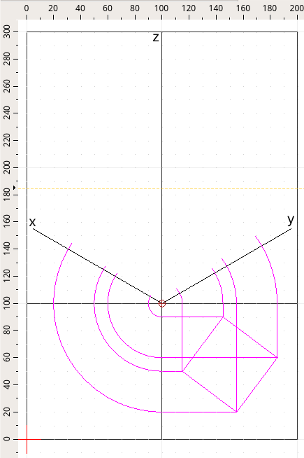 Attenzione, è molto importante incrociare gli assi x, y o z con gli archi che traccio per utilizzare nel passaggio seguente l'intersezione. Non è necessario fermarsi sull'asse in modo preciso ma è consigliabile andare oltre l'asse.