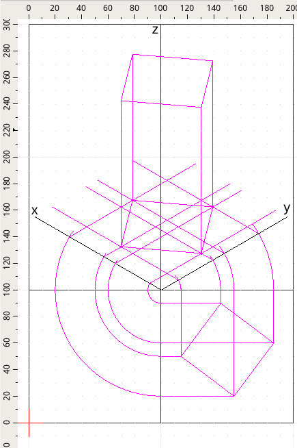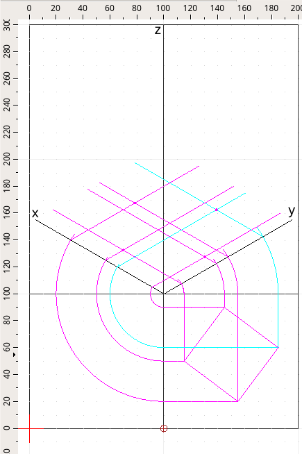 Da ogni vertice del quadrato nel quadrante basso partono due linee, queste si incontrano nuovamente nella griglia su XY, segno i 4 punti in cui si incontrano le quattro coppie di linee.